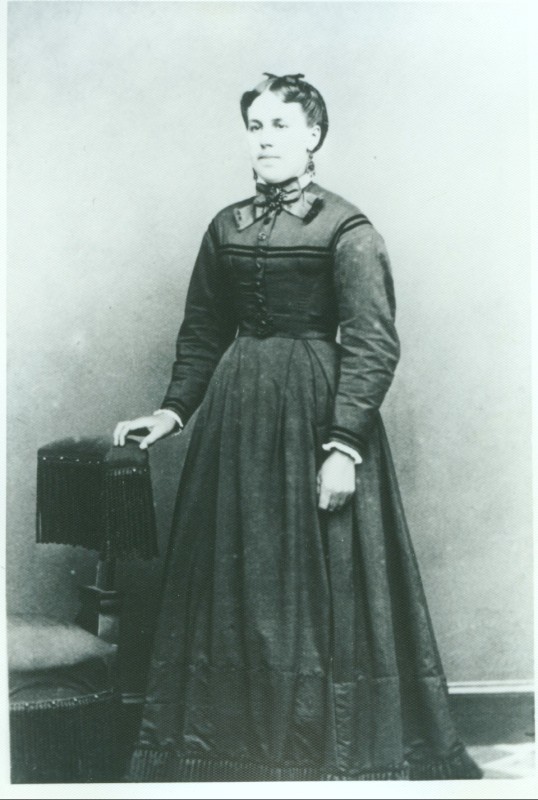 Mary Jane Gerber 1868 age 18 before her marriage to Edwin Schleicher in Pennsylvania. Click for larger picture.