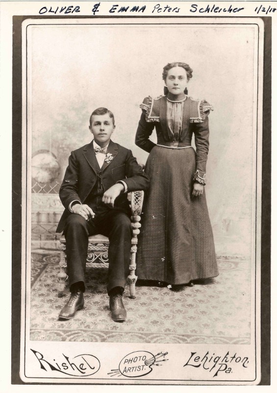 Oliver Schleicher and Emma Peters wedding photo. They were married in East Penn Twp Penna on June 26 1899.