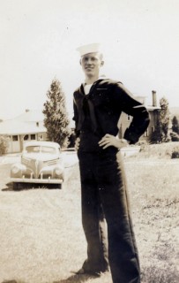 After boot camp I spent 4 months in Firecontrol training at Anacostia MD where I earned my Third Class Petty Officers rating. After Anacostia, on Nov 9th 1944, we boarded a train in Baltimore and traveled cross-country to Hunters Point California where the USS Cabot was having battle damage repaired. My first impression of the Cabot was that it had a very hard bitten crew, they had been there and back. I was berthed in the fantail and I stood all the usual gun watches. We had plenty of excellent fresh food. I was on the Cabot for the rest of the war and rode it back from the China Sea through the Panama Canal. My best memory of the Cabot was when I was accepted by the torpedo crews and the gunners mates, a great gang. I had been brought on board as a replacement for the favorite Firecontrolman who was lost in a kamakazi hit, it took months for me as a stand in, to gain the entire crews acceptance over their loss. I was very fortunate to be on such a great ship with a great crew.